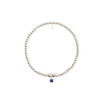 Handmade sterling silver beaded stretch bracelet with a single delicate birthstone charm and a 925 sterling silver tag.