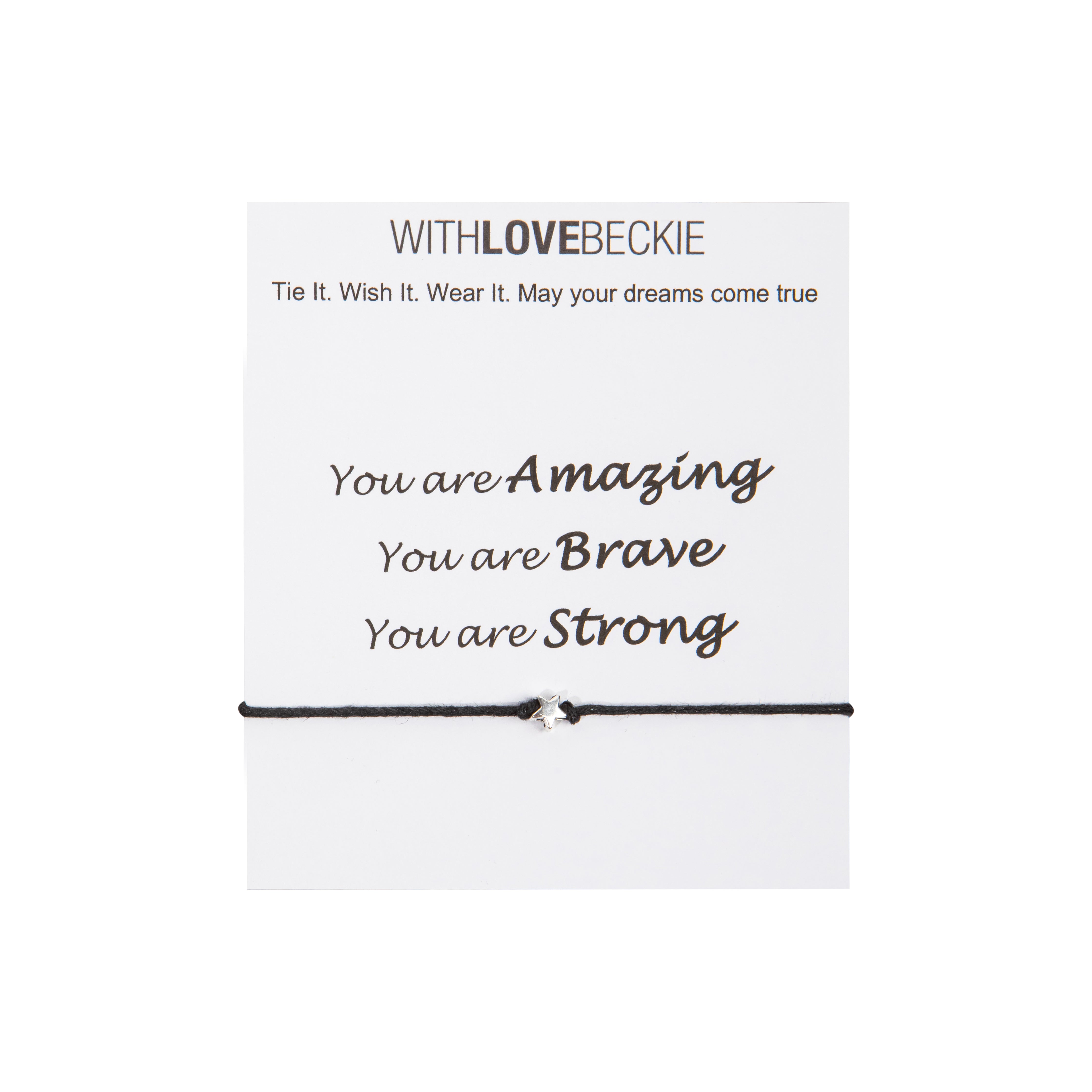 Wish String Bracelets come presented on their own inspirational and motivational quote card and packaged in clear cellophane packaging.