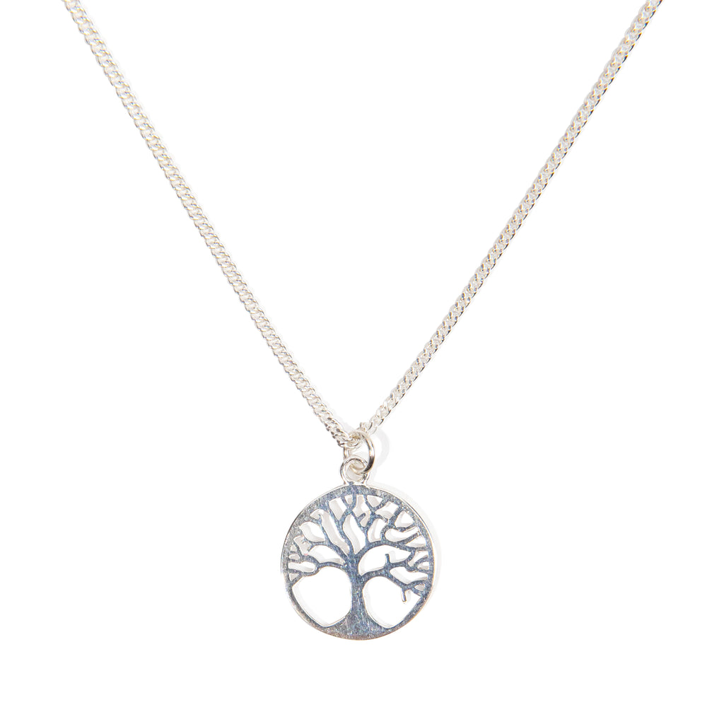 Handmade sterling silver necklace with a delicate tree of life pendant.