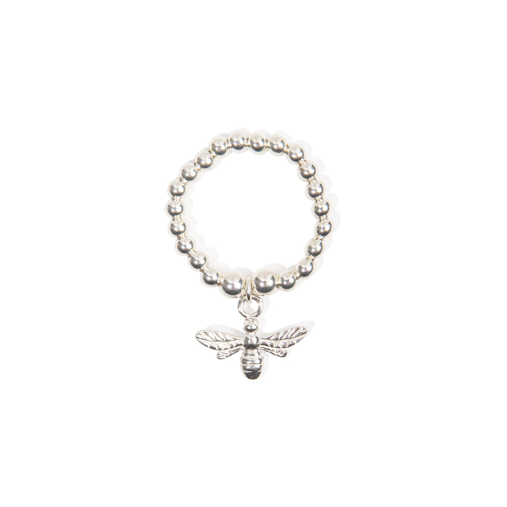 Handmade sterling silver beaded stretch ring with a bee charm.A bee symbolises love and luck.
