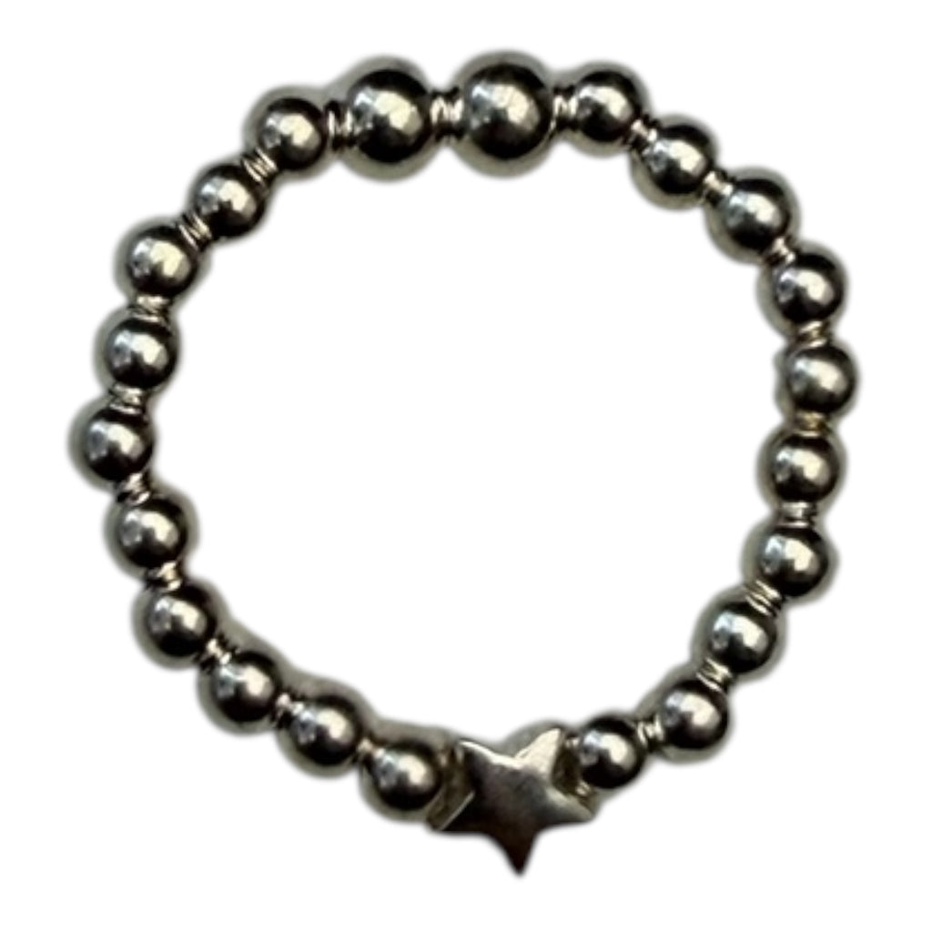Handmade sterling silver beaded stretch ring using 3mm beads thread onto strong stretch elastic with a small sterling silver Star bead charm.