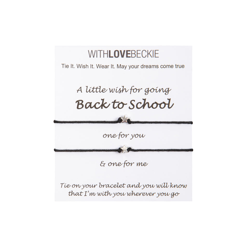 The message on the card reads - A little wish for going back to school. Tie on your bracelet and you will know that I'm wish you wherever you go.